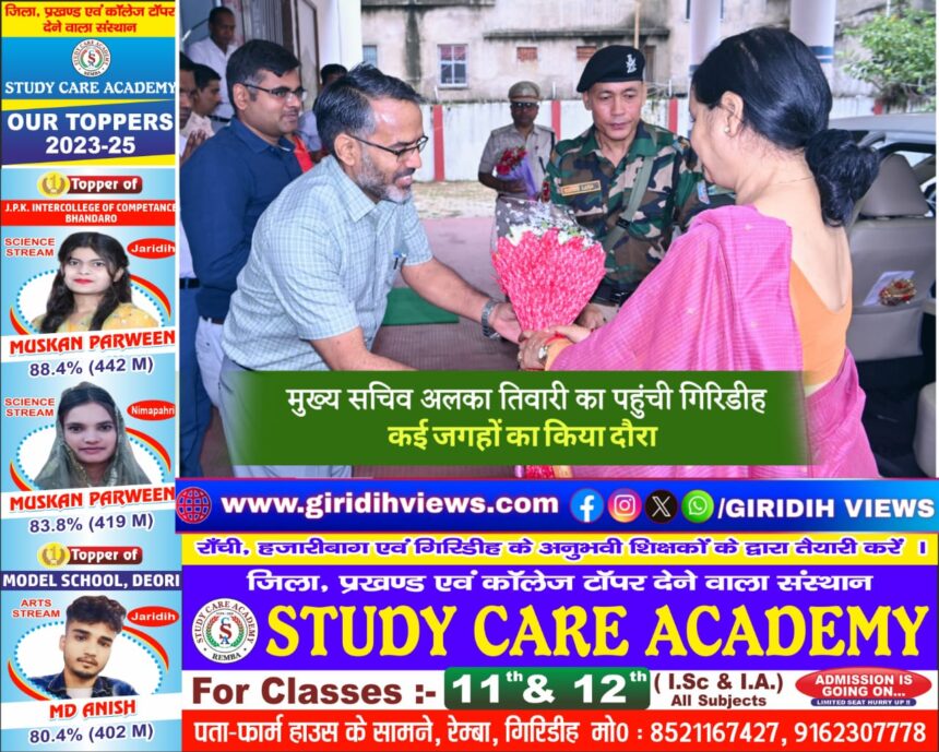 गिरिडीह:- गिरिडीह जिले में पर्यटन को बढ़ावा देने के उद्देश्य से आज श्री सुदिव्य कुमार, माननीय मंत्री, उच्च एवं तकनीकी शिक्षा, नगर विकास एवं आवास, पर्यटन, कला एवं संस्कृति, खेलकूद एवं युवा कार्य विभाग झारखंड, श्रीमती अलका तिवारी, मुख्य सचिव झारखंड, पूर्व मुख्य सचिव, झारखंड ने उसरी वाटर फॉल और खंडोली डैम पर्यटन स्थल का निरीक्षण किया।