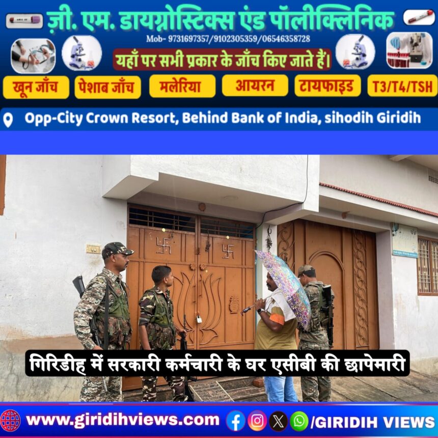 गिरिडीह जिले में एक बार फिर भ्रष्टाचार निरोधक ब्यूरो (एसीबी) की टीम ने बड़ी कार्रवाई को अंजाम दिया है। इस बार एसीबी की टीम ने पीरटांड प्रखंड कार्यालय में कार्यरत सरकारी कर्मचारी प्रदीप गोस्वामी के घर पर छापेमारी की है।