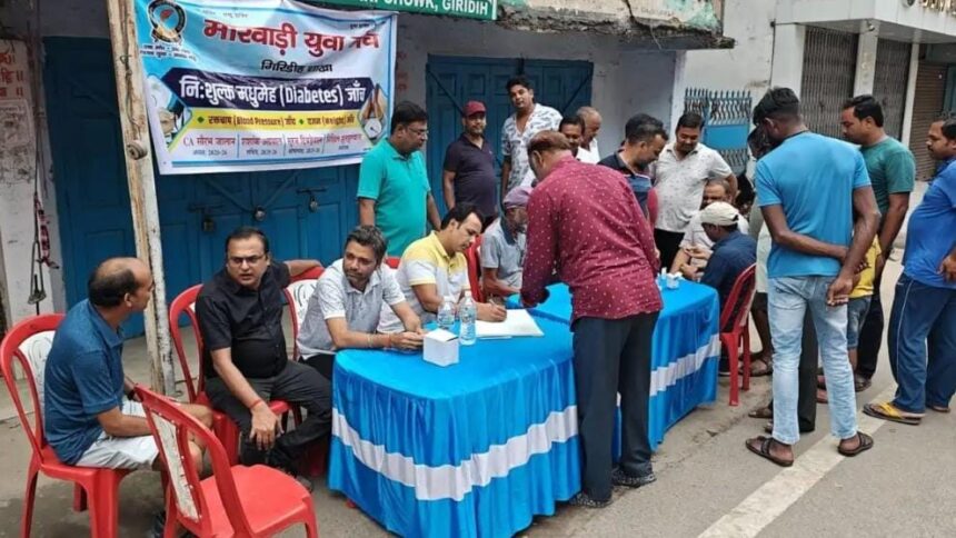 गिरिडीह: शहर के कालीबाड़ी चौक पर रविवार को मारवाड़ी युवा मंच गिरिडीह शाखा और Diabetic क्लब के संयुक्त तत्वावधान में एक निःशुल्क स्वास्थ्य जांच शिविर का आयोजन किया गया।