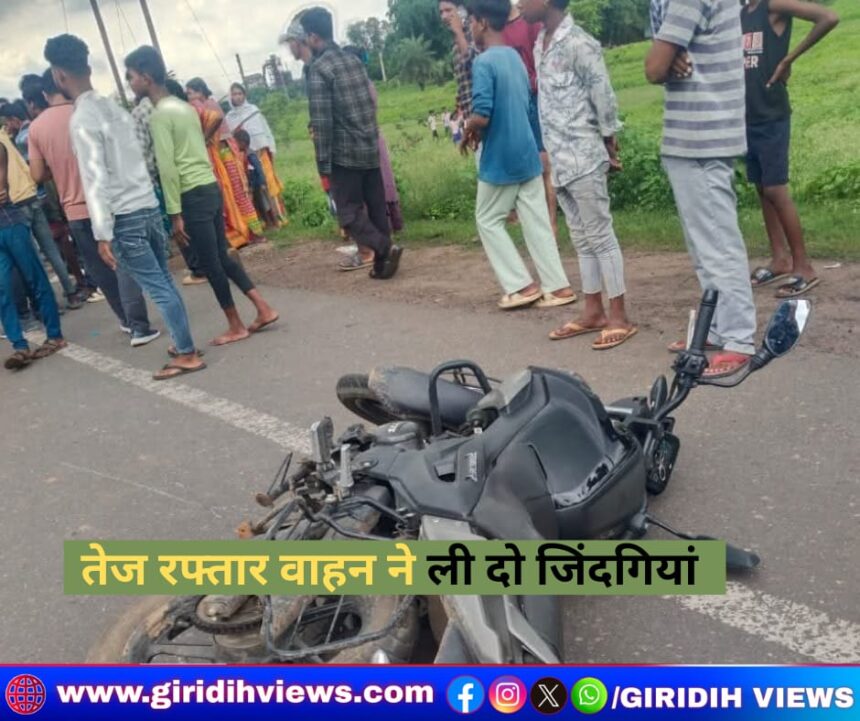 गिरिडीह जिले में एक बार फिर तेज रफ्तार ने कहर बरपाया है। सोमवार को गिरिडीह-धनबाद मुख्य मार्ग पर चतरो के समीप हुए भीषण सड़क हादसे में बाइक सवार एक मासूम समेत दो लोगों की मौके पर ही मौत हो गई। हादसे में एक छोटा बच्चा किसी तरह सुरक्षित बच गया। मृतकों में एक आठ वर्षीय बालक और 23 वर्षीय युवक शामिल हैं।