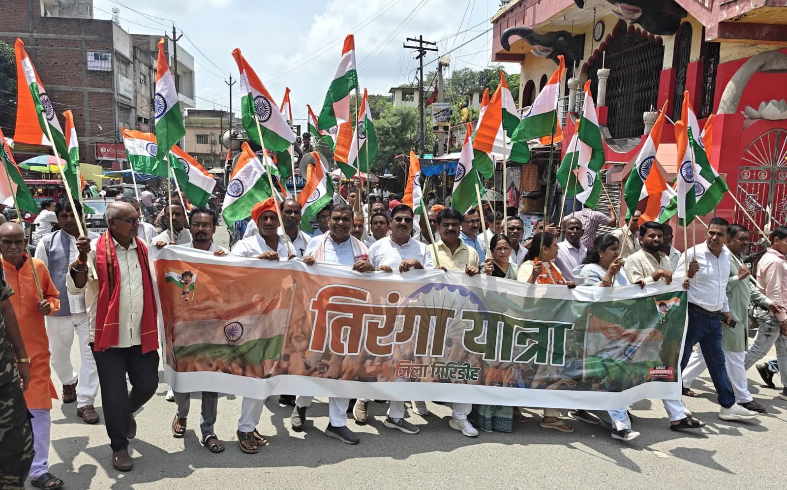 गिरिडीह: हर घर तिरंगा अभियान के तहत रविवार को गिरिडीह शहर में भव्य तिरंगा यात्रा का आयोजन किया गया। झंडा मैदान से निकली इस यात्रा में 77 मीटर लंबा तिरंगा मुख्य आकर्षण रहा, जिसमें सैकड़ों भाजपा कार्यकर्ताओं ने भाग लिया।