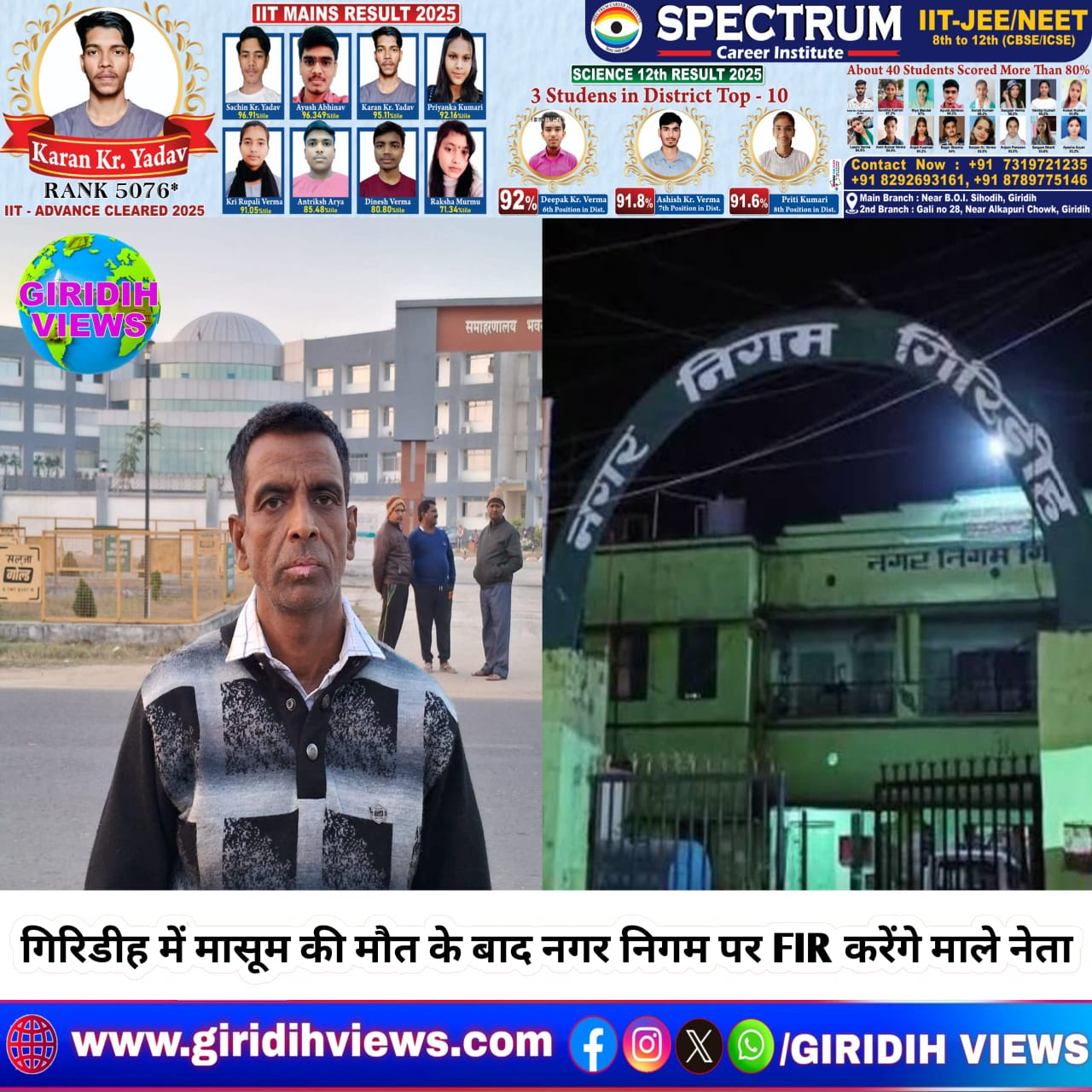गिरिडीह: शनिवार को गांधी चौक स्थित बड़े नाले में मासूम की मौत के बाद राजनीतिक बयानबाज़ी तेज हो गई है। माले नगर कमिटी के सचिव राजेश सिन्हा ने नगर निगम और जिला प्रशासन पर गंभीर आरोप लगाते हुए कहा कि यह हादसा पूरी तरह नगर निगम की लापरवाही का नतीजा है।