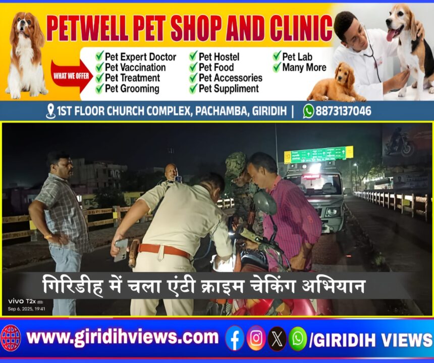 गिरिडीह। आगामी दुर्गा पूजा को लेकर पुलिस प्रशासन पूरी तरह से अलर्ट मोड में है। शहर की शांति और सुरक्षा सुनिश्चित करने के लिए शनिवार देर शाम नगर थाना प्रभारी ज्ञान रंजन के नेतृत्व में उसरी नया पुल पर विशेष वाहन जांच अभियान चलाया गया।
