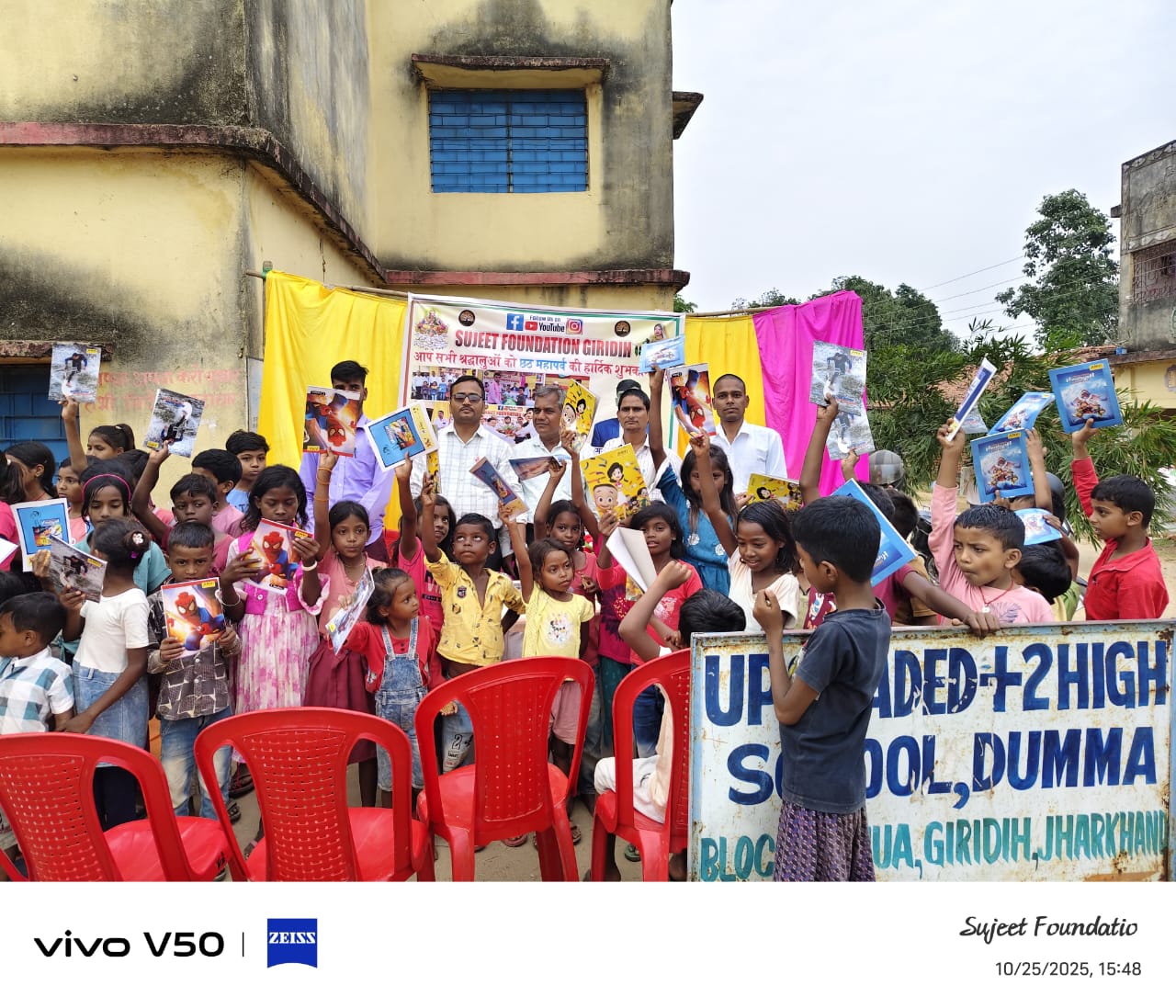 गिरिडीह: लोक आस्था के महापर्व छठ पूजा के पावन अवसर पर सामाजिक कार्यों में सक्रिय सुजीत फाउंडेशन ने गिरिडीह के दुम्मा में एक प्रेरणादायक कार्यक्रम का आयोजन किया। फाउंडेशन ने शिक्षा को प्रोत्साहित करने के उद्देश्य से उत्क्रमित +2 उच्च विद्यालय दुम्मा में जरूरतमंद बच्चों के बीच निःशुल्क कॉपी का वितरण किया।