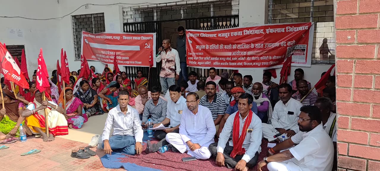 गिरिडीह/पीरटांड़: मधुबन स्थित कोरिया दलित बस्ती को उजाड़ने की कोशिशों के विरोध में भाकपा (माले) के बैनर तले शुक्रवार को पीरटांड़ प्रखंड मुख्यालय परिसर में एक दिवसीय धरना का आयोजन किया गया। धरना में दर्जनों ग्रामीण पुरुष और महिलाएं शामिल हुए। कार्यक्रम की सूचना पहले से ही जिला प्रशासन को दी गई थी।