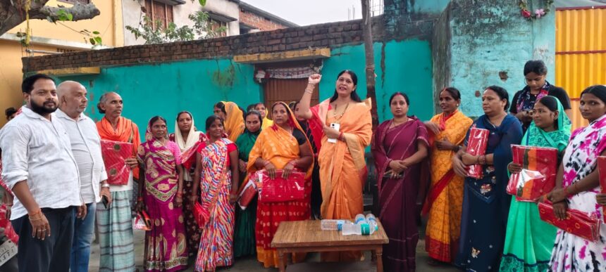साड़ी वितरण कार्यक्रम गिरिडीह के कर्बला रोड और बरमसिया इलाके में आयोजित किया गया, जहां नगर मंत्री अमित आर्या के नेतृत्व में वार्ड पार्षद गुड़िया देवी, भाजपा नगर मंत्री समीर दीप, वरिष्ठ कार्यकर्ता सुरेश गुप्ता समेत कई कार्यकर्ता उपस्थित रहे।
