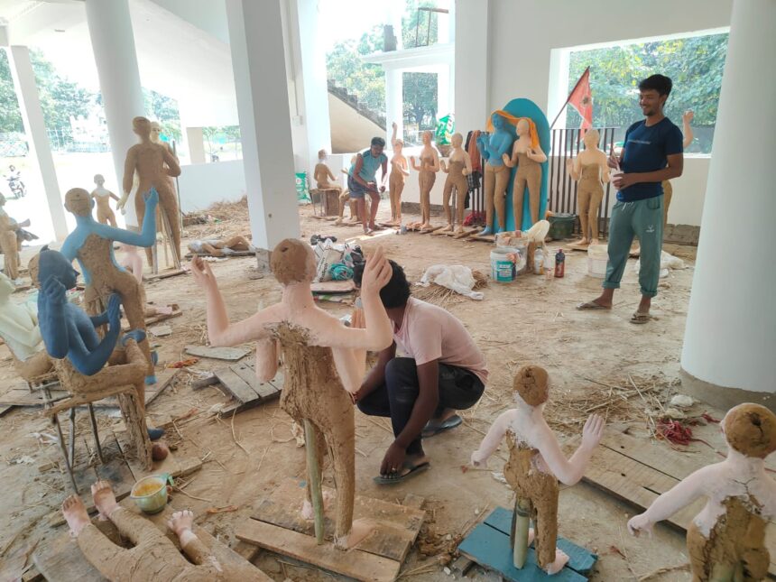 कलाकारों की व्यस्तता — मूर्तियों को मिल रहा आकार
