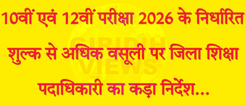 गिरिडीह :- जिला शिक्षा पदाधिकारी (DEO) श्री वसीम अहमद ने जानकारी देते हुए बताया कि हाल के दिनों में छात्रों द्वारा दूरभाष एवं सोशल मीडिया के माध्यम से यह शिकायतें प्राप्त हुई हैं कि वार्षिक माध्यमिक एवं इंटरमीडिएट परीक्षा 2026 के फॉर्म भरने के लिए झारखंड अधिविद्य परिषद, रांची द्वारा निर्धारित शुल्क से अधिक राशि की वसूली की जा रही है तथा अभिश्रव (रसीद) भी उपलब्ध नहीं कराया जा रहा है। उन्होंने इस पर गहरी नाराजगी व्यक्त की है।