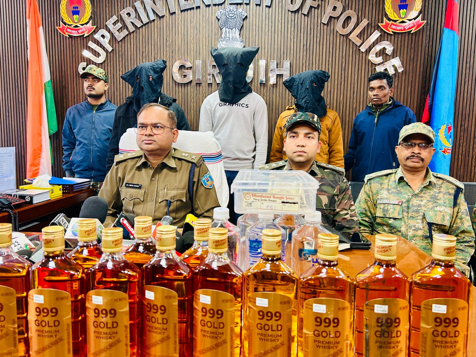 डुमरी–गिरिडीह मुख्य मार्ग होकर बिहार भेजी जा रही अवैध शराब की बड़ी खेप को गिरिडीह पुलिस ने एक सफल छापामारी अभियान के दौरान जब्त कर लिया। पुलिस अधीक्षक को मिली गुप्त सूचना के आधार पर संचालित इस कार्रवाई में एक ट्रक व एक एक्सयूवी 500 वाहन के साथ तीन तस्करों को गिरफ्तार किया गया है।