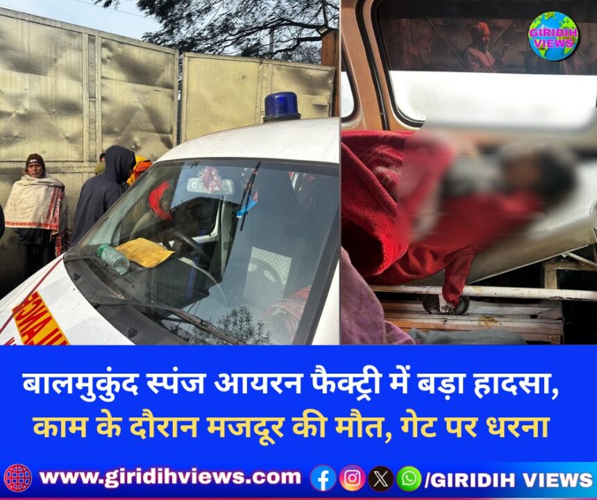 गिरिडीह: जिले के बालमुकुंद स्पंज आयरन फैक्ट्री में कार्य के दौरान हुए एक गंभीर हादसे में 28 वर्षीय मजदूर राजाराम कुशवाहा की मौत हो गई। घटना के बाद फैक्ट्री परिसर और आसपास के इलाके में तनाव और आक्रोश का माहौल बन गया है। मृतक के परिजन फैक्ट्री गेट के सामने शव रखकर मुआवजे की मांग को लेकर धरने पर बैठे हुए हैं।