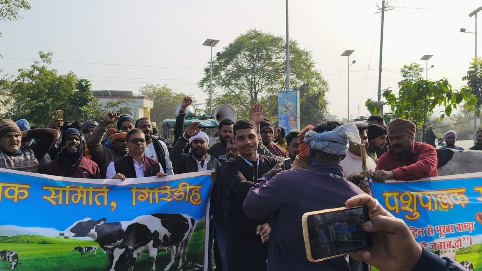 प्रदर्शन के दौरान पशुपालक अपने साथ गोवंश लेकर स्टेडियम मैदान से जुलूस निकालते हुए न्यू समाहरणालय पहुंचे, जहां प्रशासन और पुलिस के खिलाफ नारेबाजी की गई।