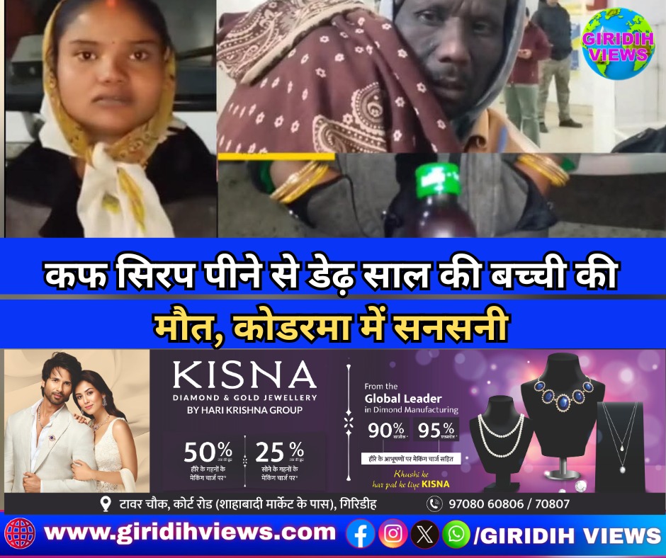 कोडरमा में कफ सिरप पीने से 1.5 साल की बच्ची की मौत, स्वास्थ्य विभाग ने शुरू की जांच…