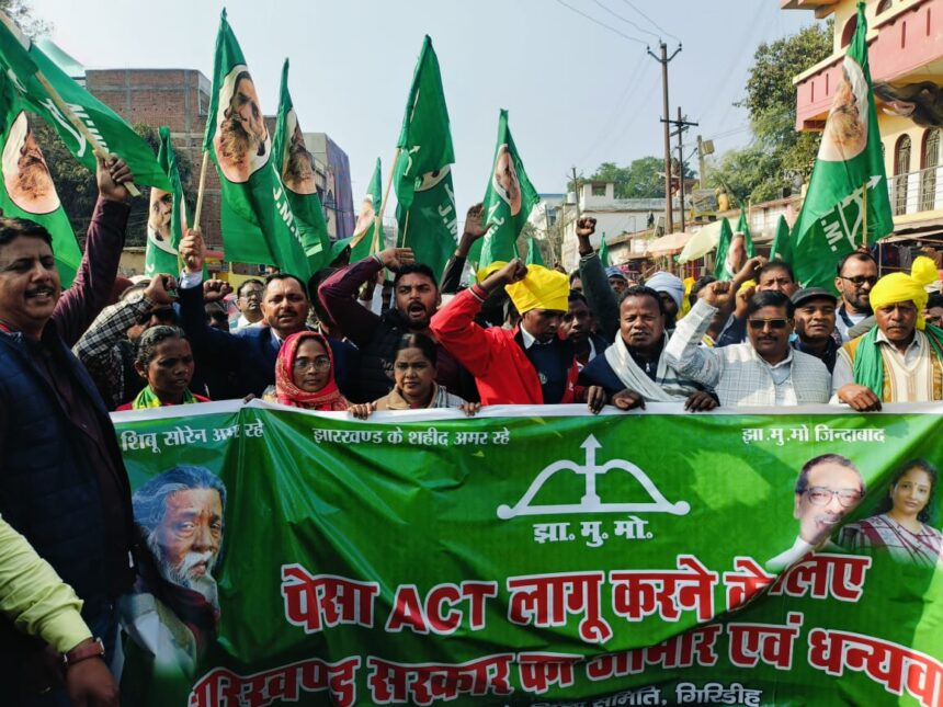 झारखंड सरकार द्वारा 23 दिसंबर 2025 को कैबिनेट में पेसा नियमावली को स्वीकृति दिए जाने के बाद शुक्रवार को गिरिडीह में उत्सव का माहौल देखने को मिला। इस अवसर पर…